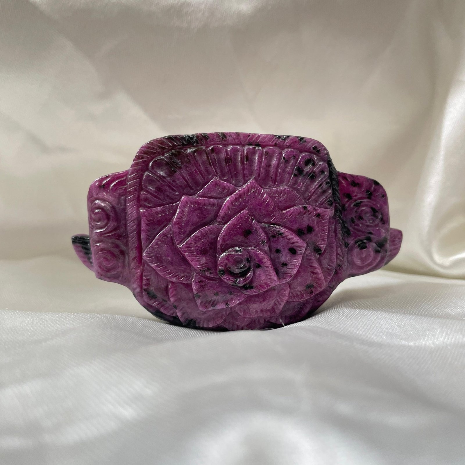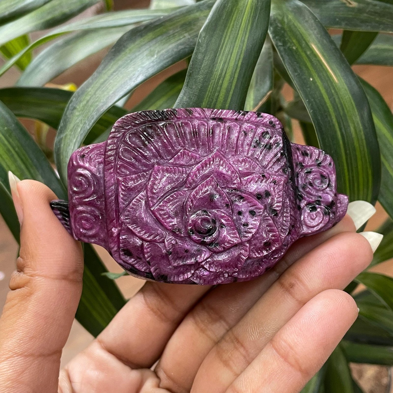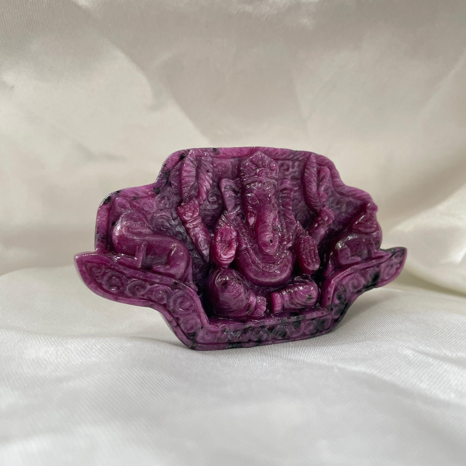 Each piece is uniquely carved by skilled artisans, making it a one-of-a-kind spiritual and decorative collectible. The rich natural pink-to-purple tones of ruby add elegance and depth, perfect for a home altar, office desk, meditation space, or spiritual décor.