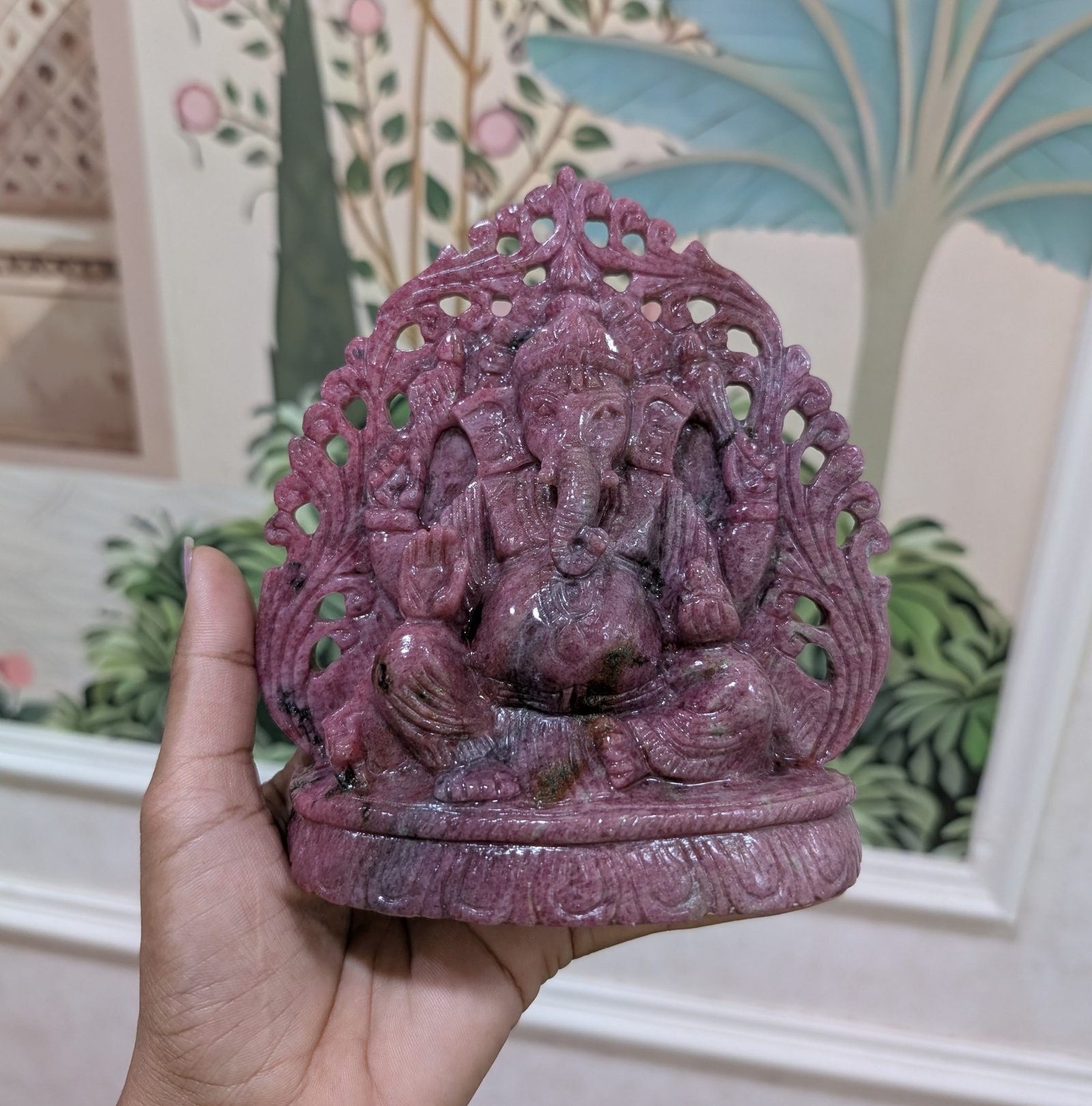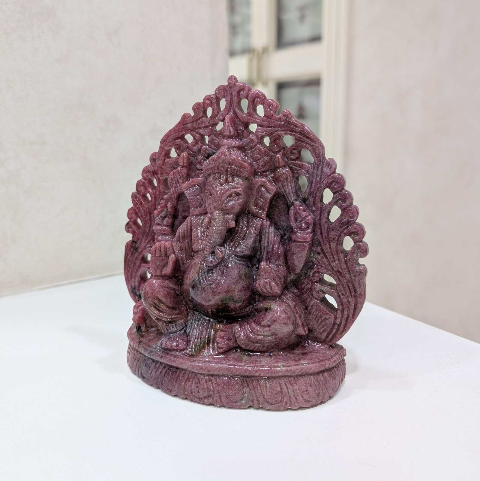 Perfect for your home altar, meditation space, living room, or office, it creates a serene atmosphere and invites good fortune. It also makes a thoughtful gift for housewarmings, birthdays, anniversaries, and festivals like Diwali. Bring home this exquisite Ruby Zoisite Ganesha and let its vibrant energy fill your surroundings with harmony and blessings.