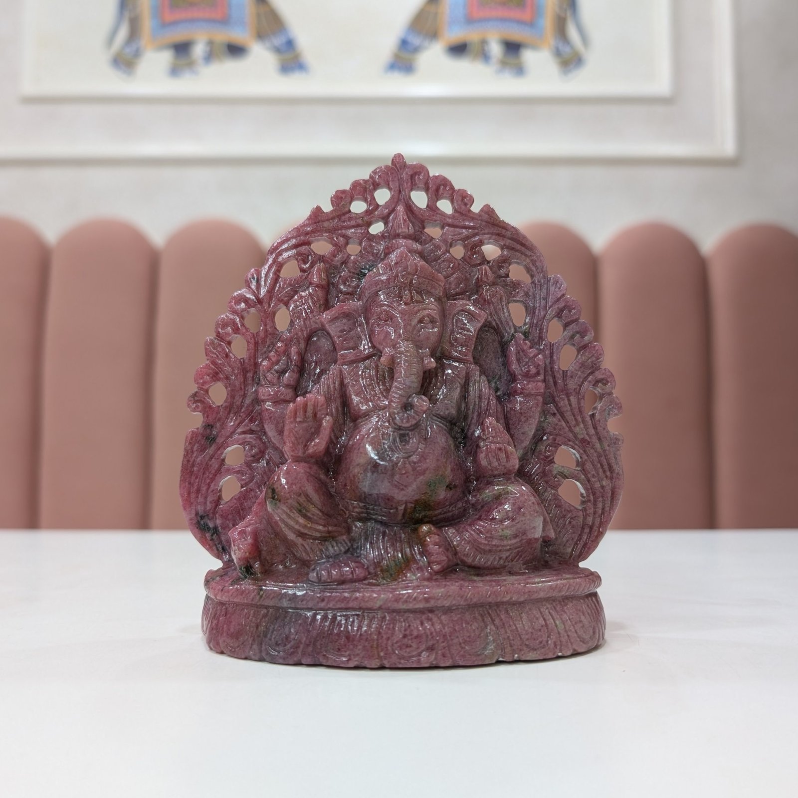 Ruby Zoisite Ganesha Idol, 6″ Pink Lord Ganesha Statue