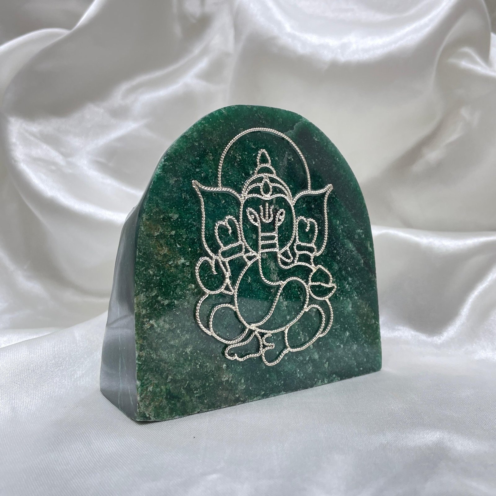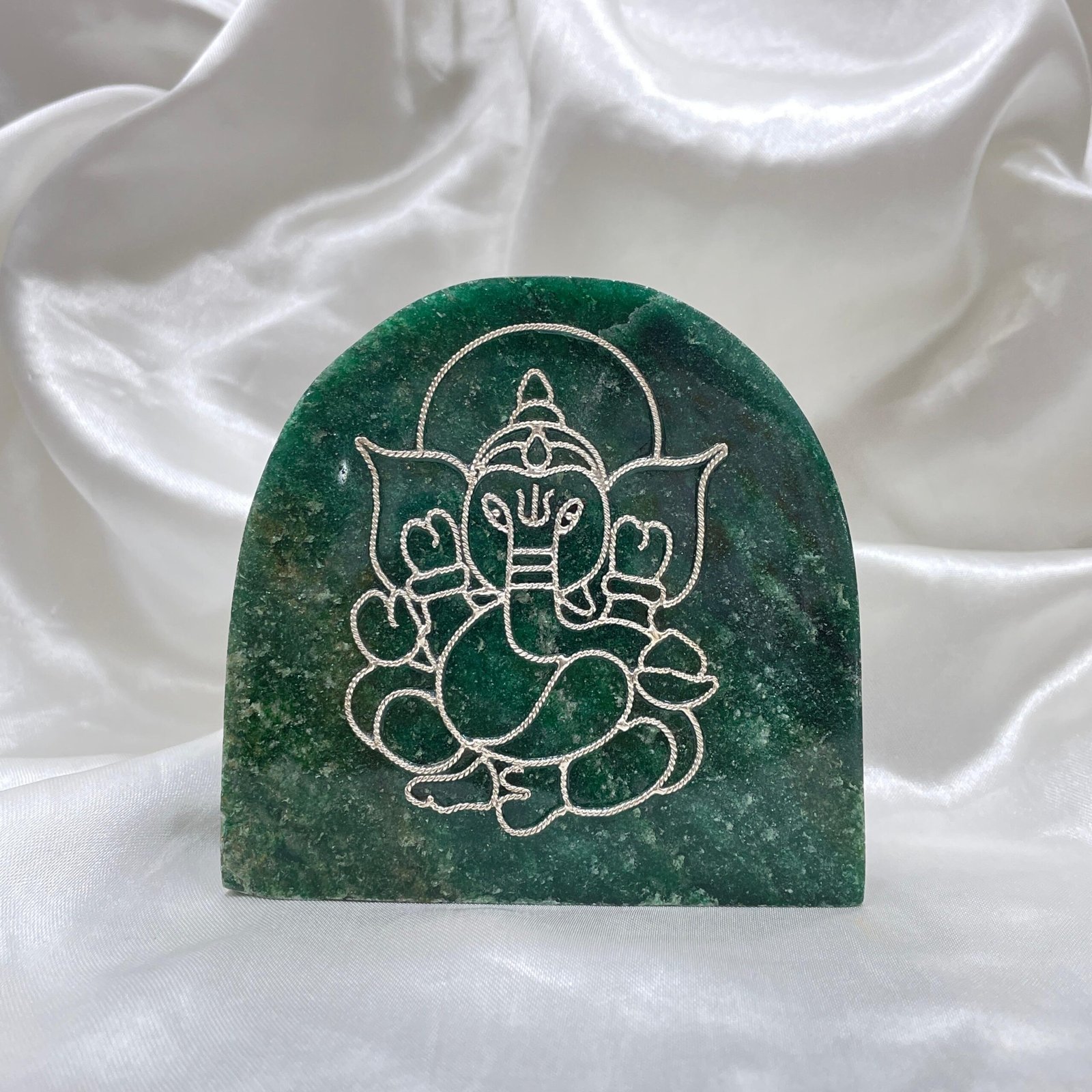 5 Divine Silver Ganesha on Green Jade Stone – Spiritual Gift