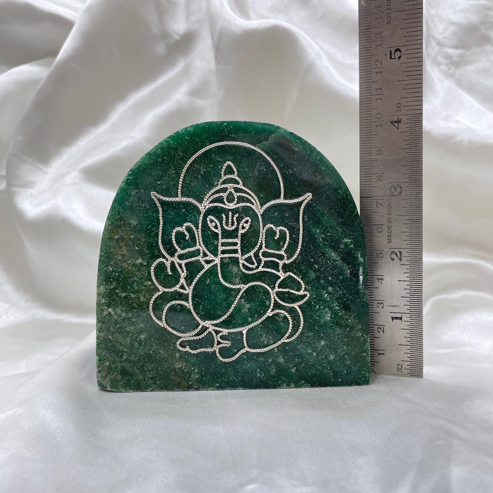 Place the Silver Ganesha on Green Jade Stone in your pooja room, meditation space, living room, or office to maximize spiritual benefits.