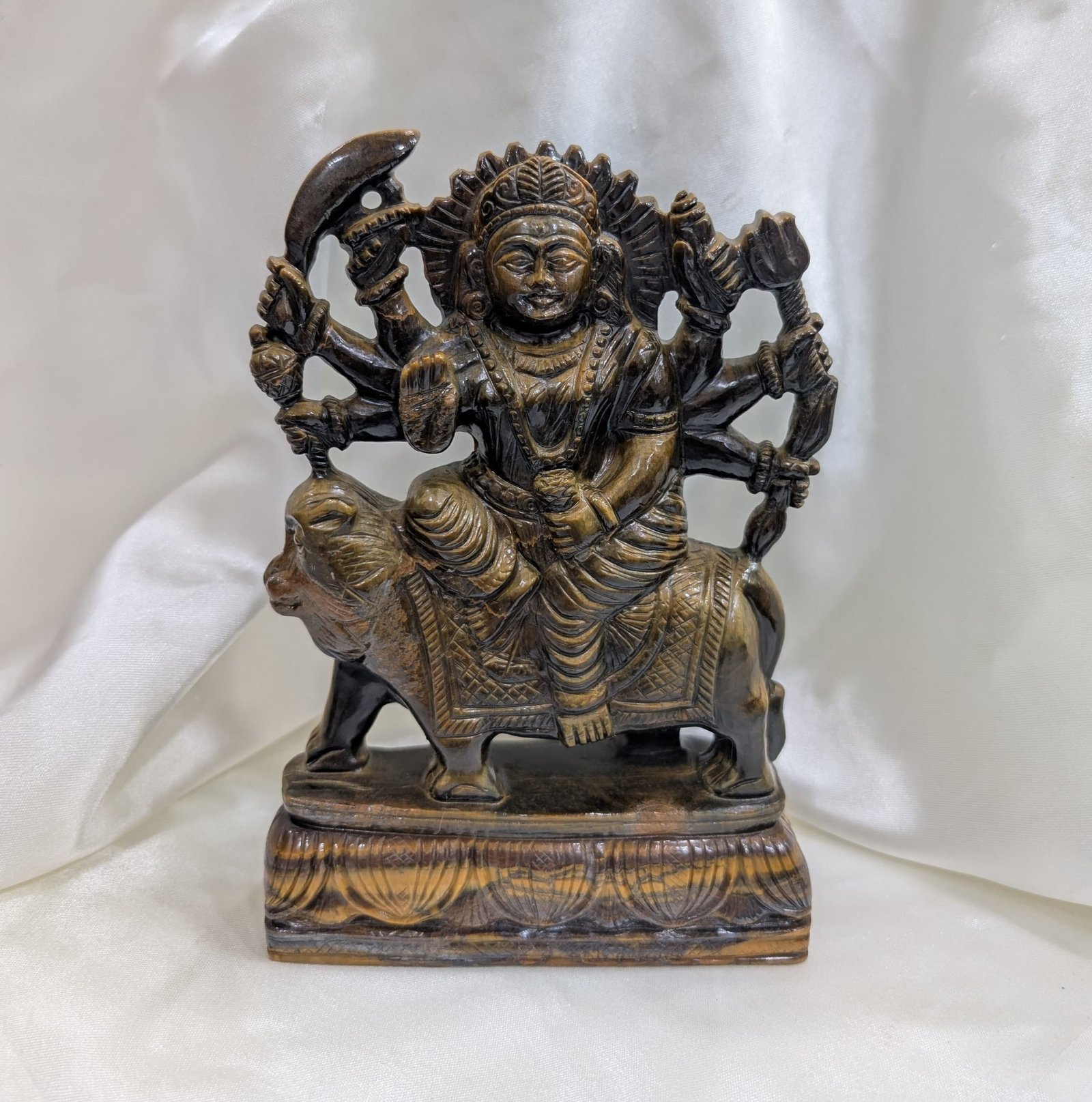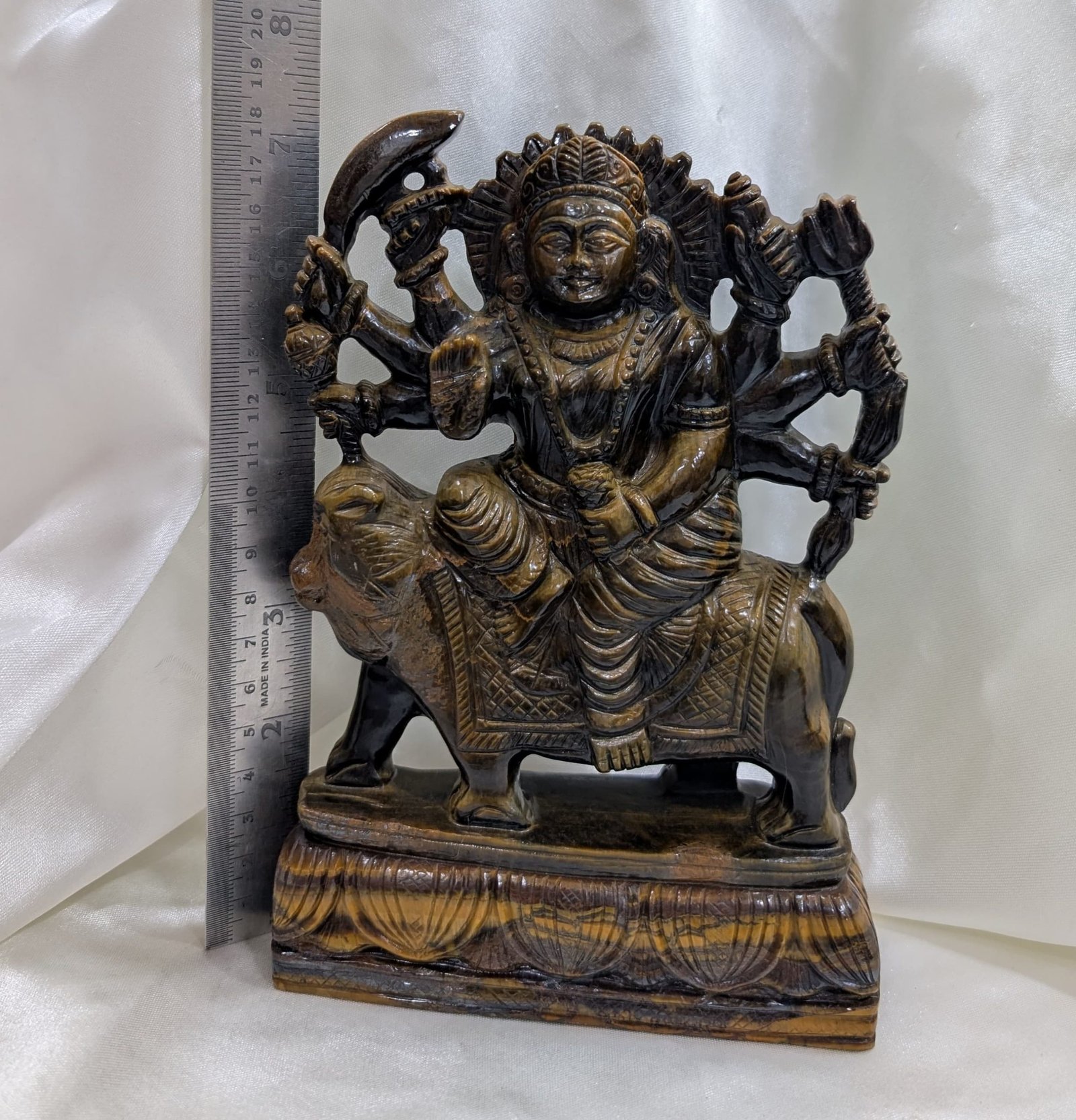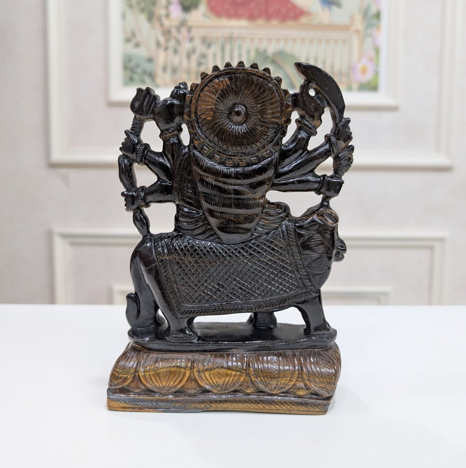 Tiger Eye Ma Durga Statue Idol, 7.5″ Hand Carved Hindu Goddess Figurine