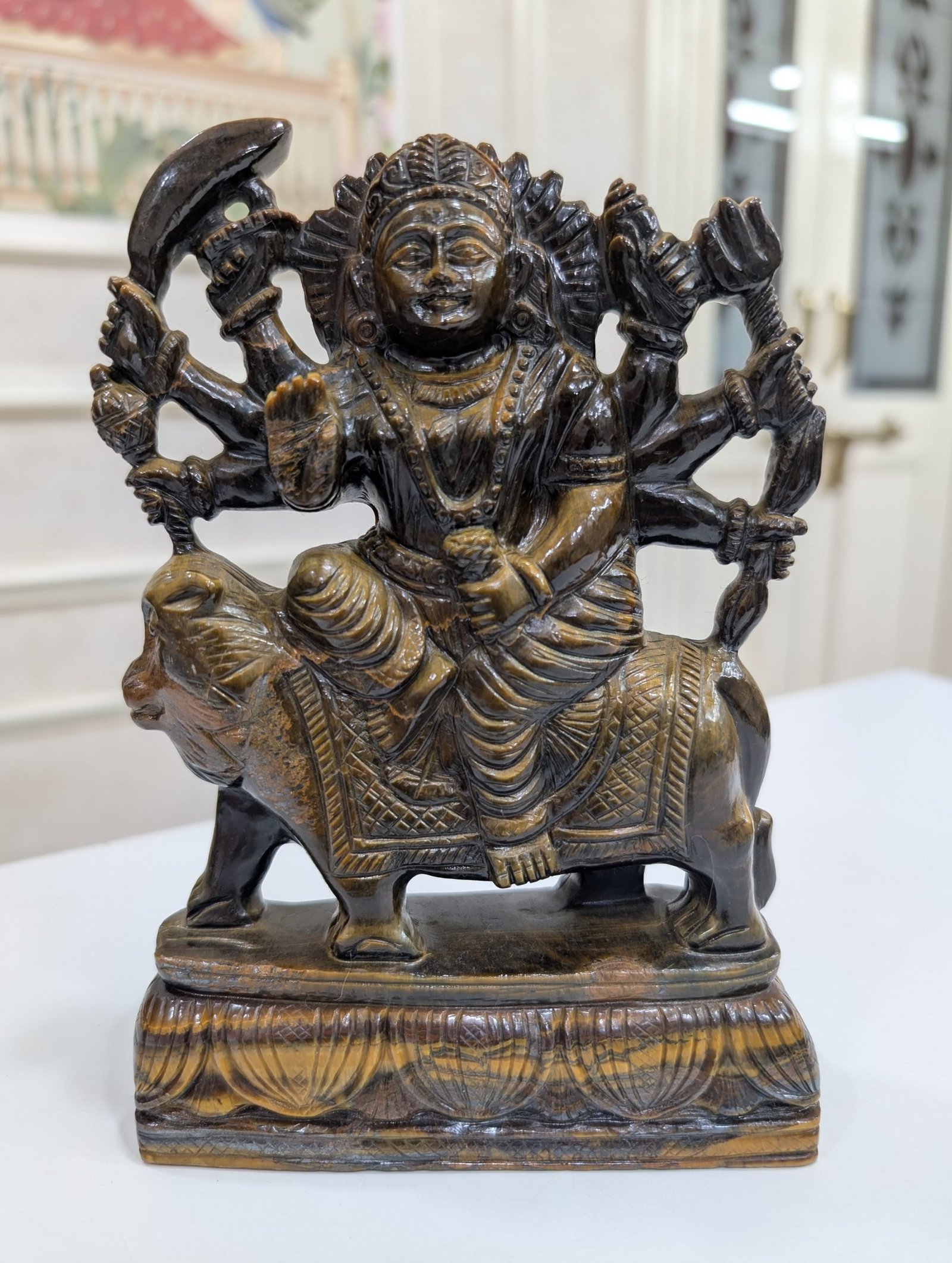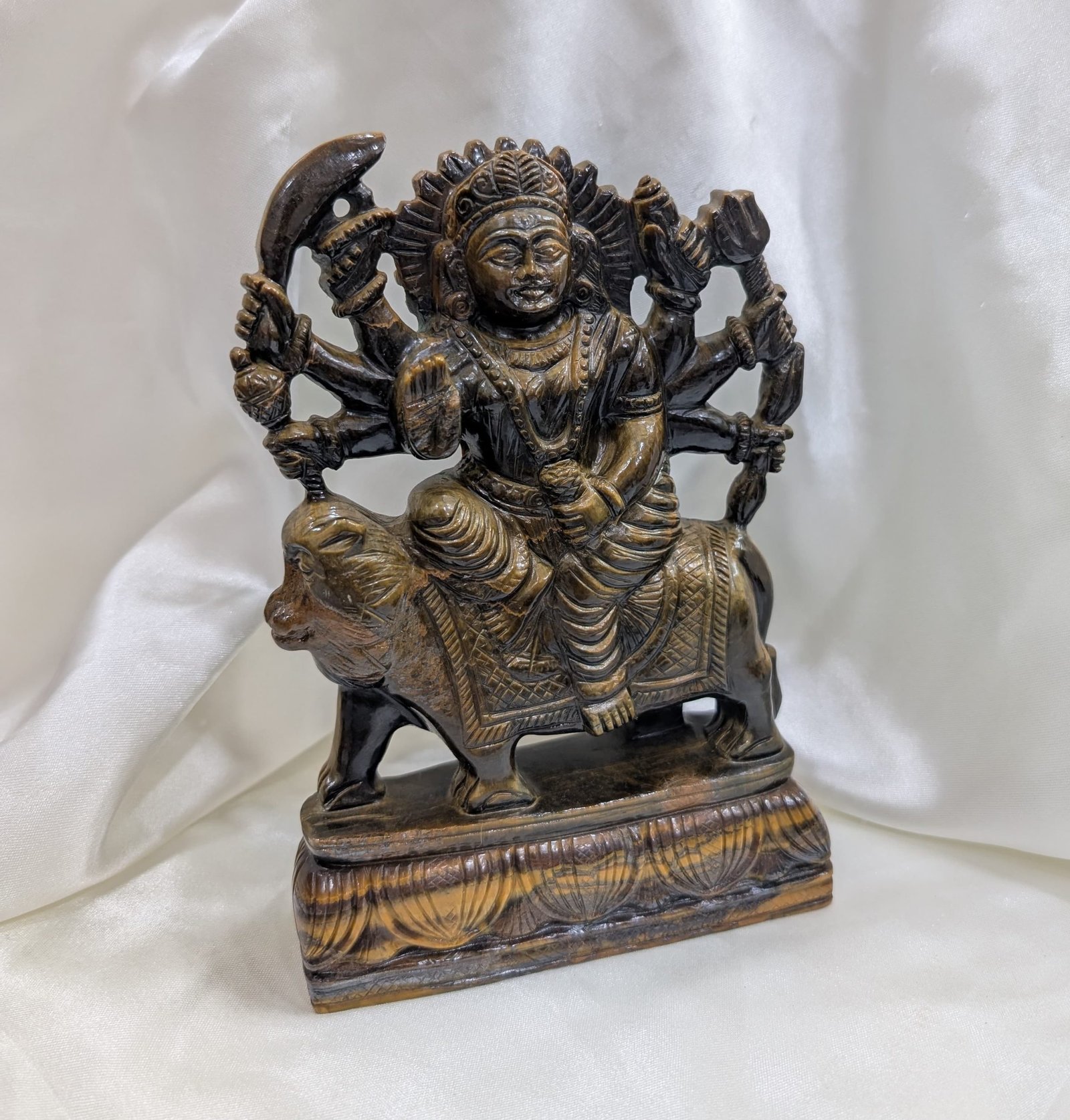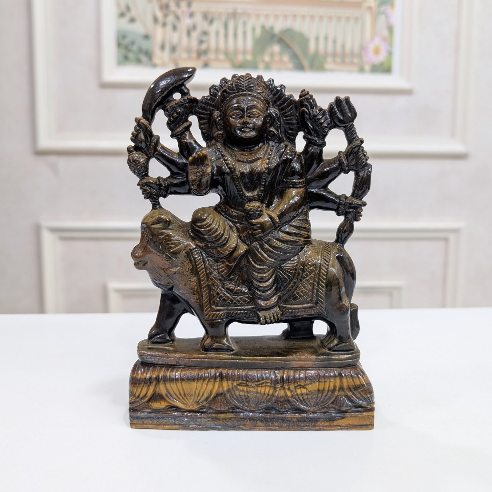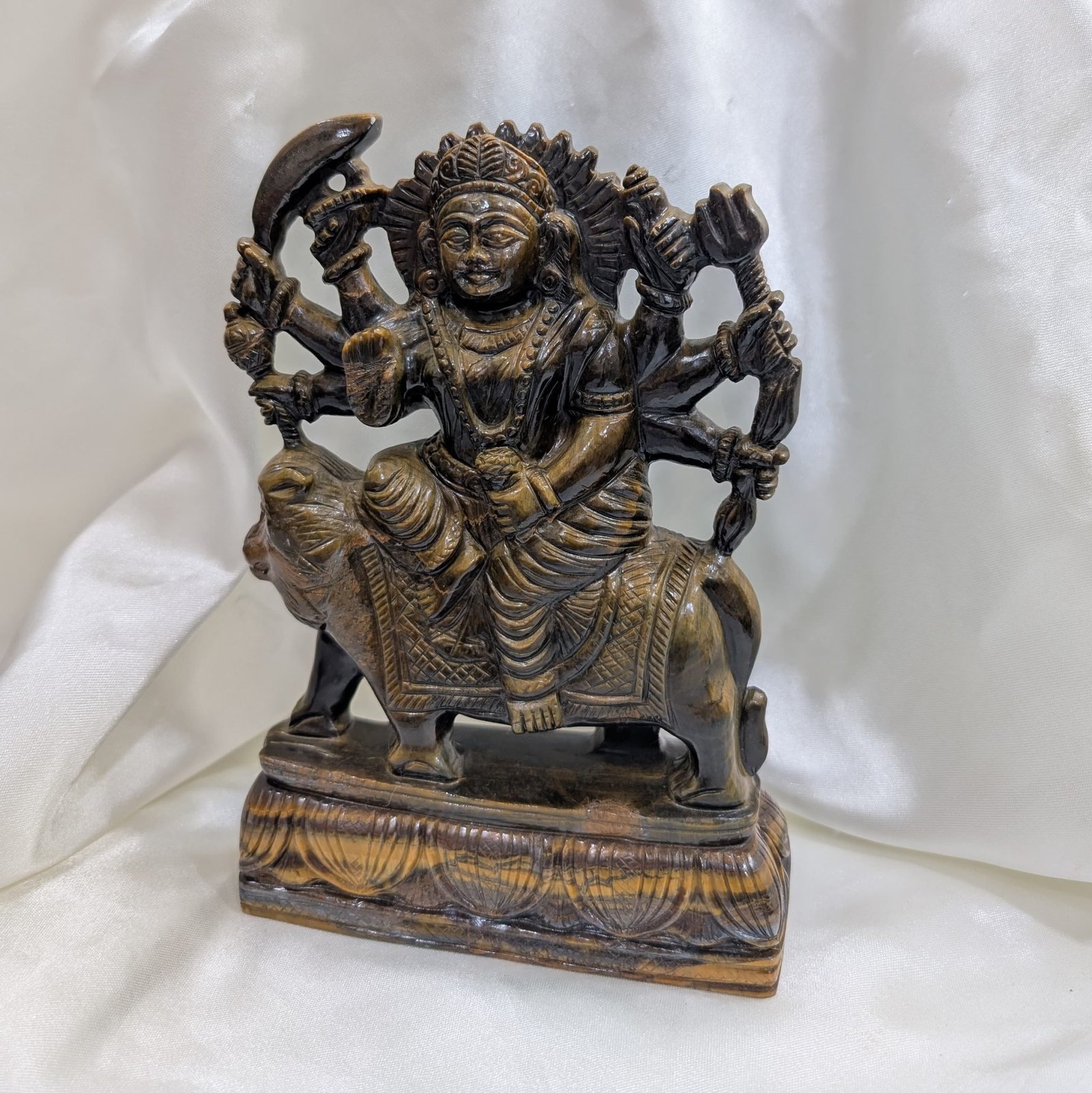 Tiger Eye Ma Durga Statue Idol, 7.5″ Hand Carved Hindu Goddess Figurine