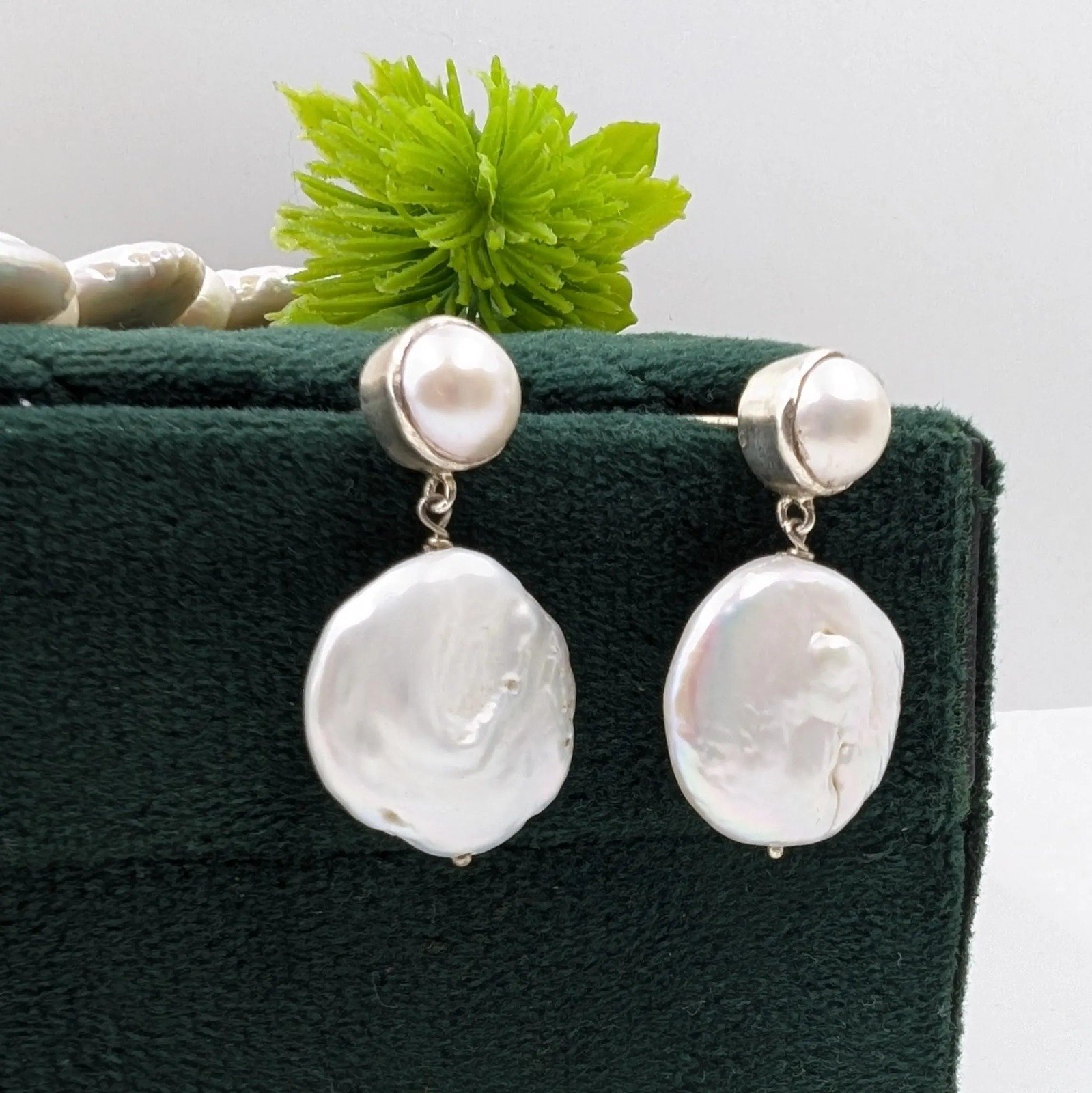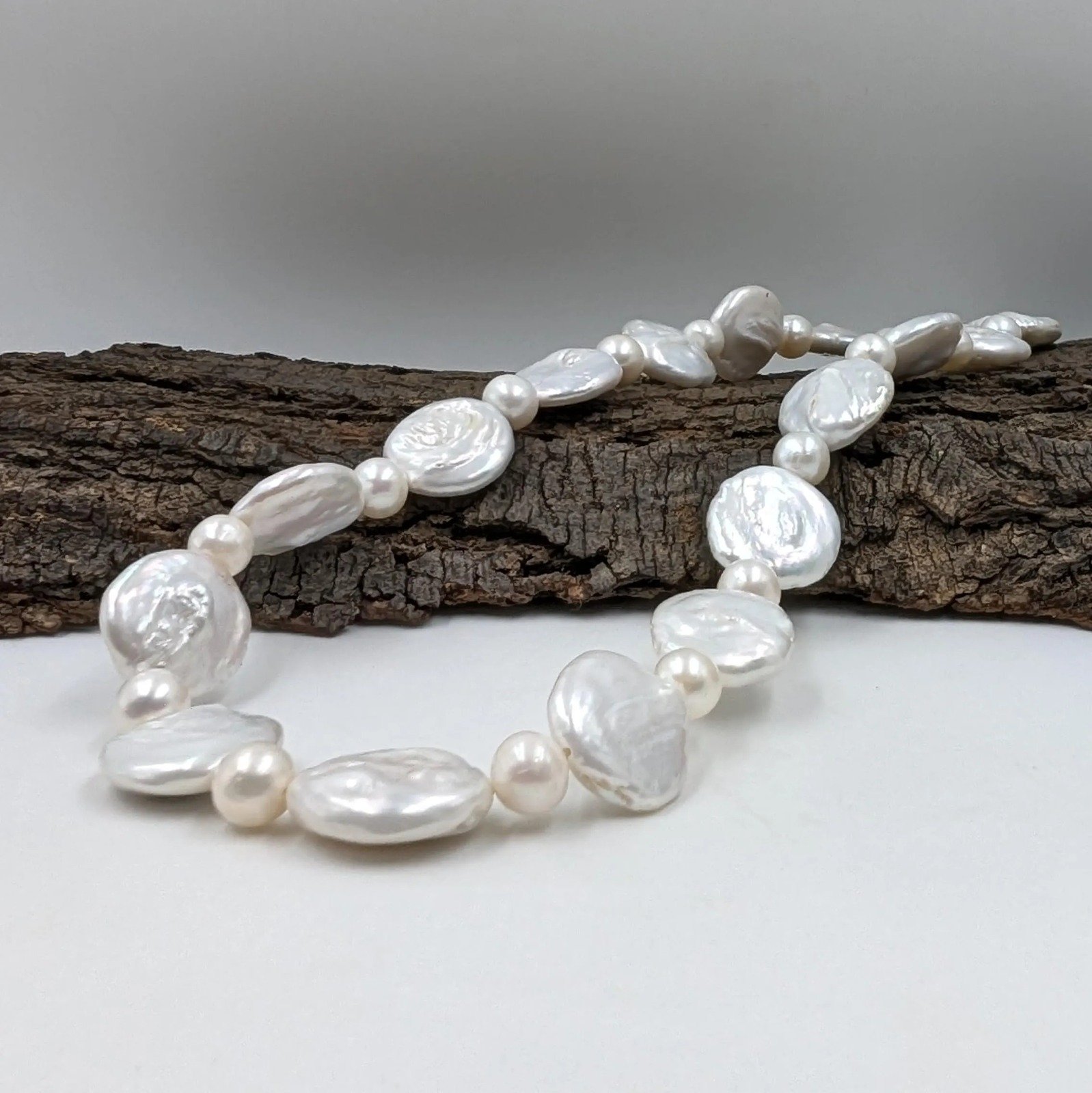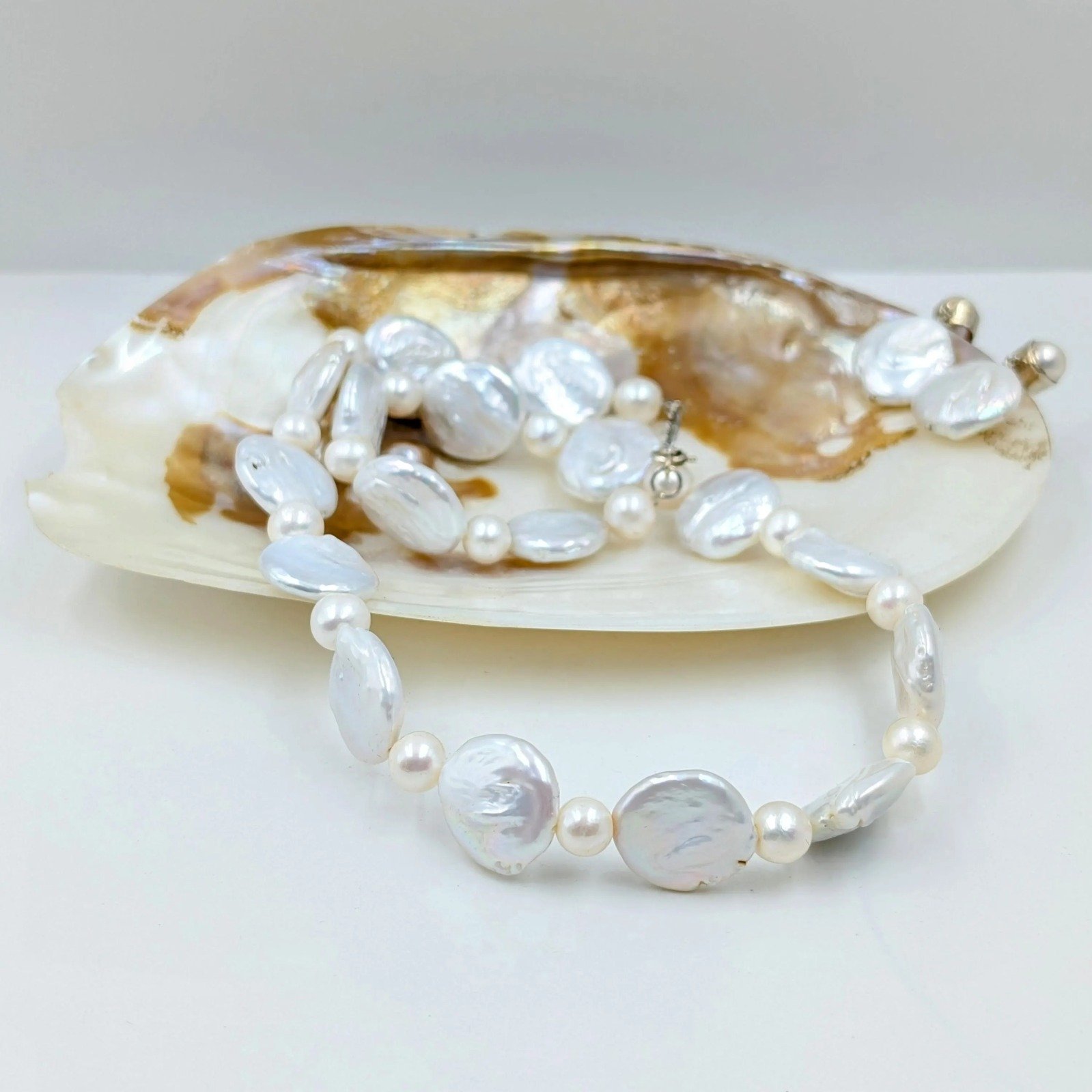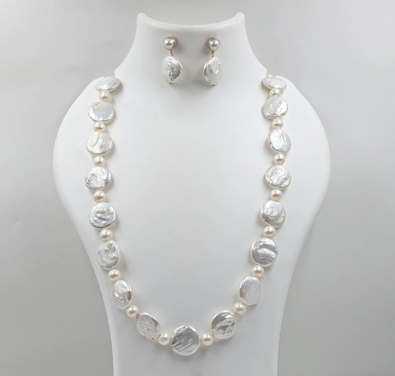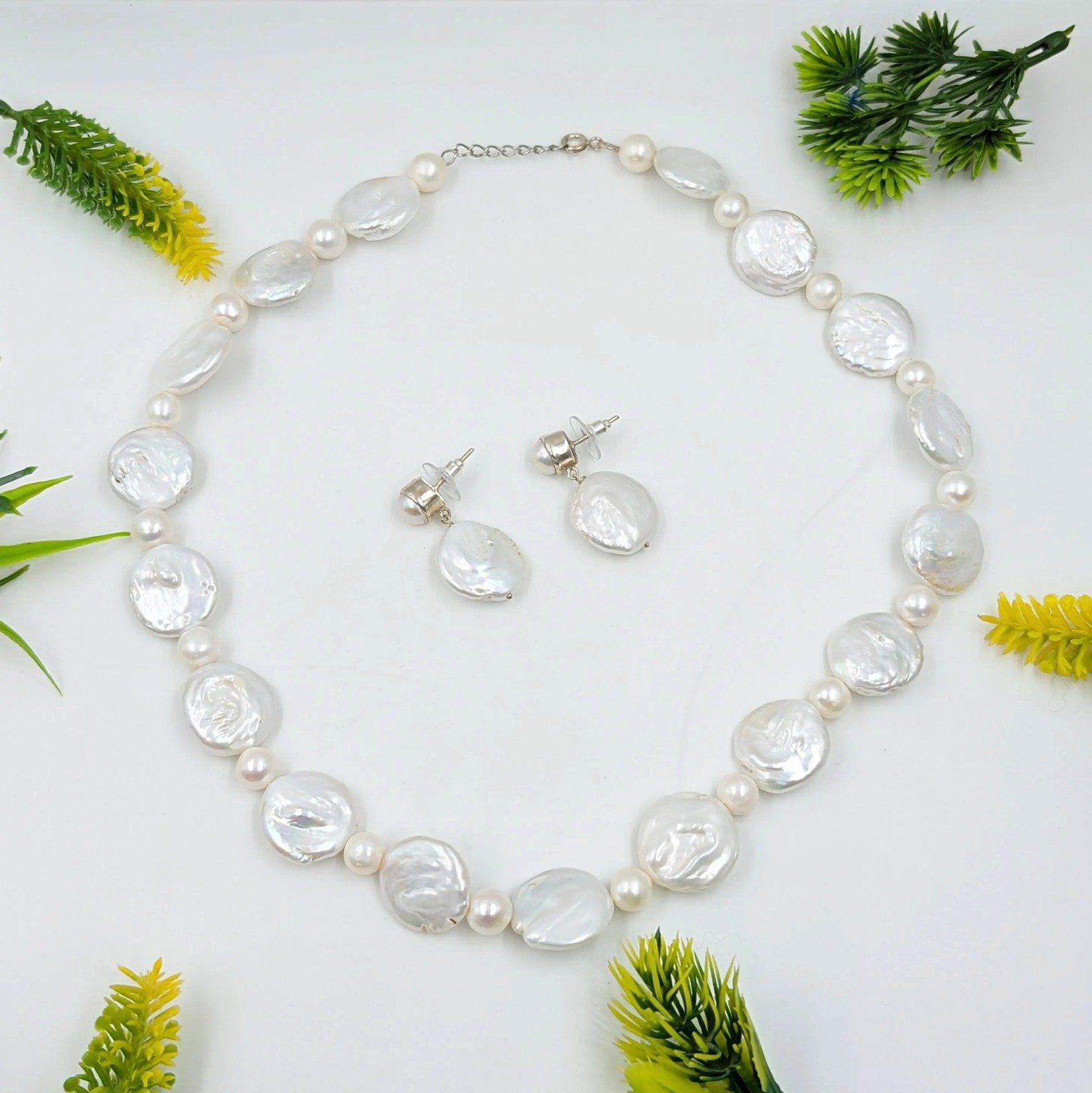 White Coin Pearl Necklace & Earrings Set – Dainty Freshwater Jewellery